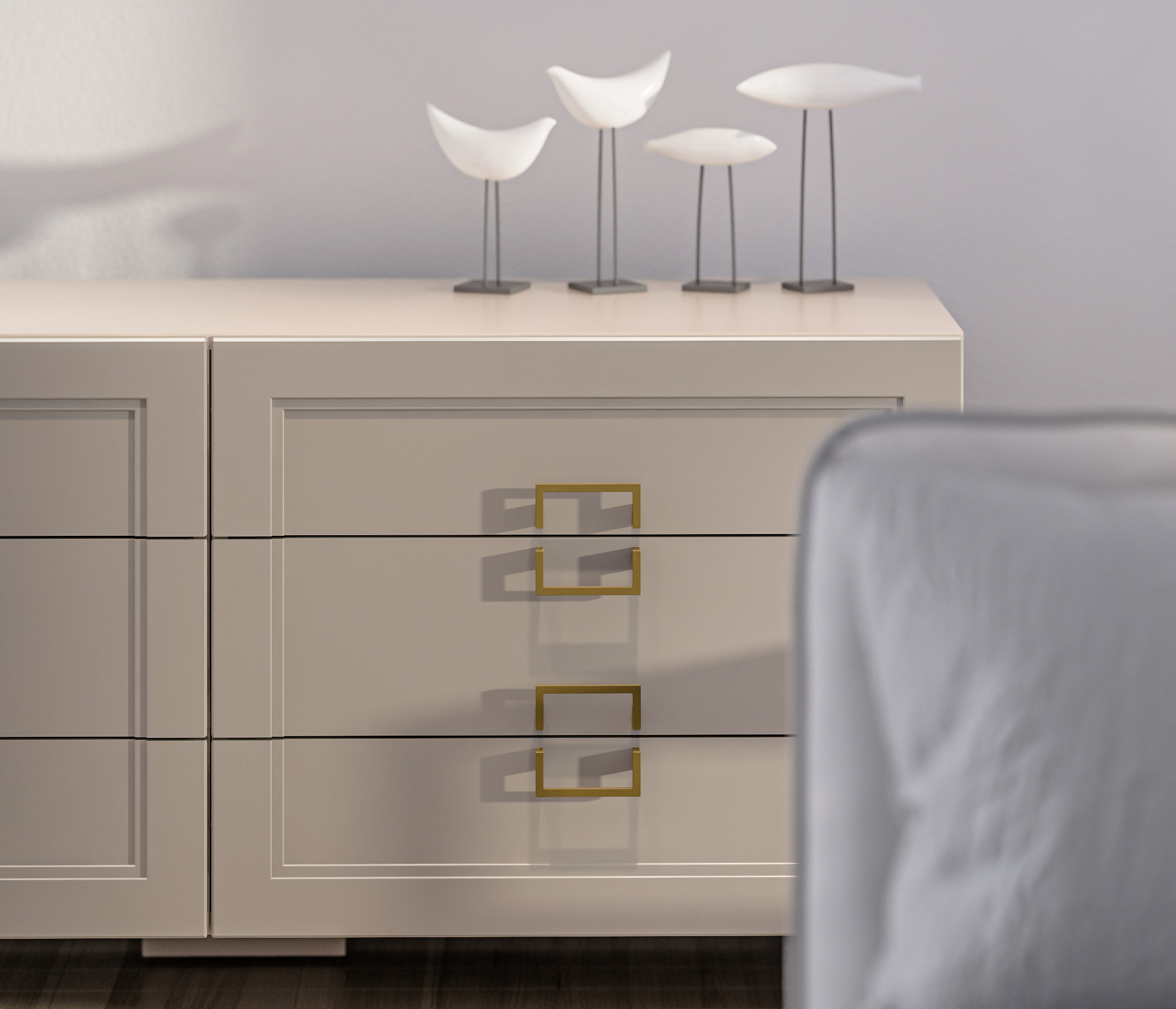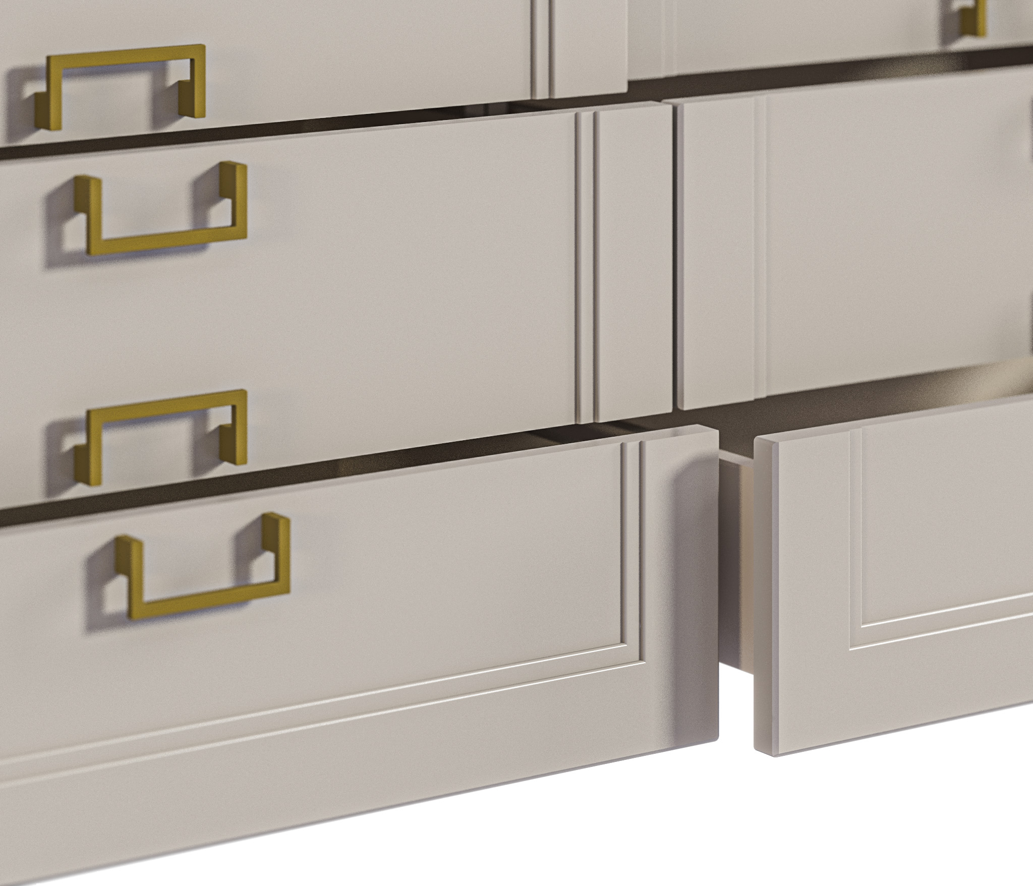 Ящики идеально ровно не встают. Если вытащил ящики, то вставляются тяжело. Установщики вставляли вдвоем., чтобы попасть в зазоры.Заглушки тоже тяжело вставляются, пришлось вбивать их .Цвет заглушек отличается. Мебель серые, а заглушки бежевые. Отверстия для ручек не просверлены до конца.только с одной стороны Пришлось сборщикам досверливать